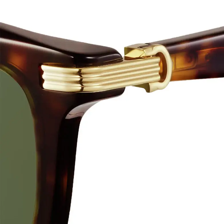 • Première de Cartier sunglasses in tortoiseshell composite, rectangular shape and green lenses. Dimensions: lenses 53 mm, bridge 20 mm, temples 145 mm