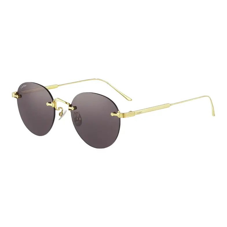 • Signature C de Cartier sunglasses, smooth golden-finish titanium, round shape and gray lenses. Dimensions: 52 mm lenses, 20 mm bridge, 145 mm temples.