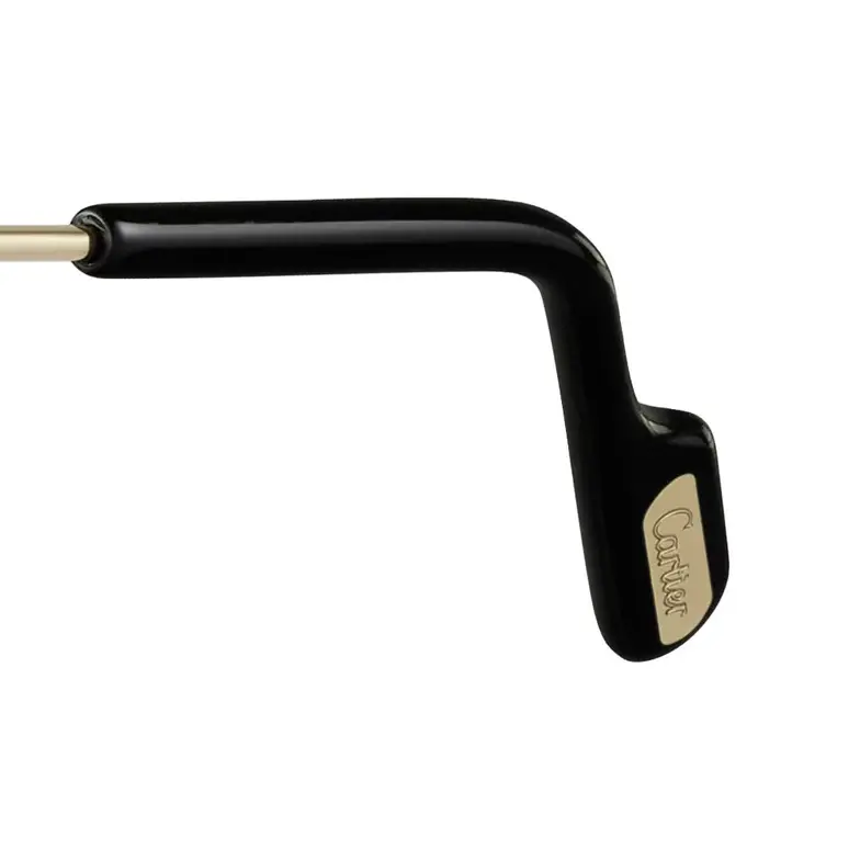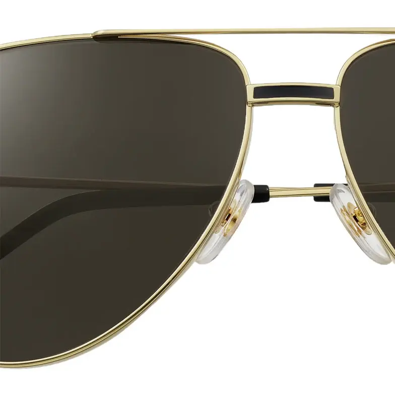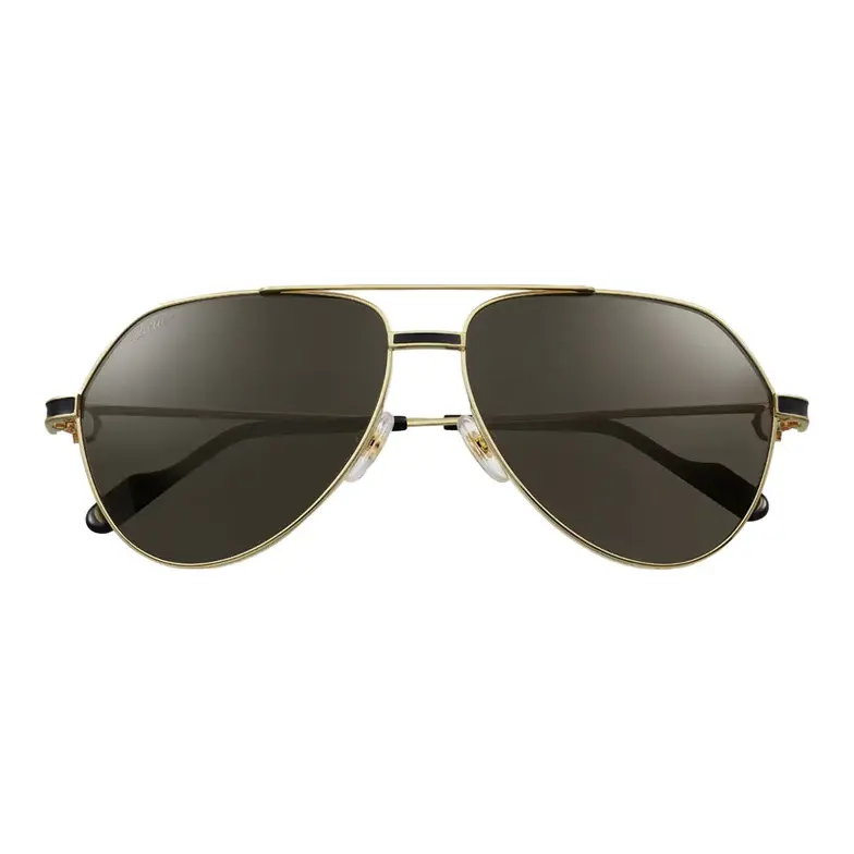 • Première de Cartier sunglasses in smooth golden-finish metal and black enamel, pilot shape and gray lenses. Dimensions: 61 mm lenses, 14 mm bridge, 145 mm temples.
