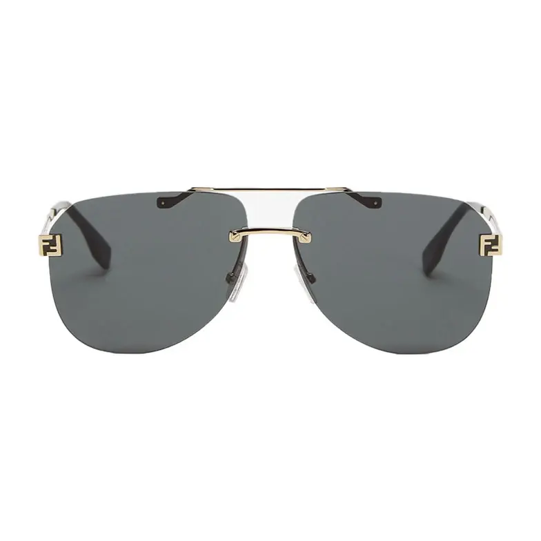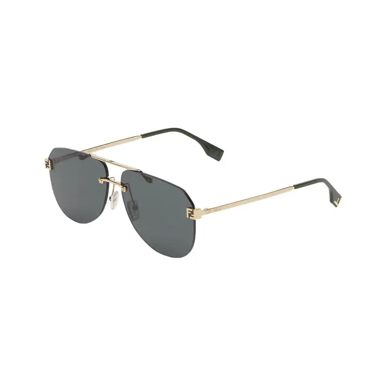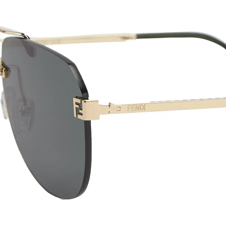 Aviator, ultra-lightweight Fendi Sky glasses featuring green lenses and metal end pieces with 3D FF customisation. Slim gold-colored metal temples with green acetate tips. Adjustable nose pads.