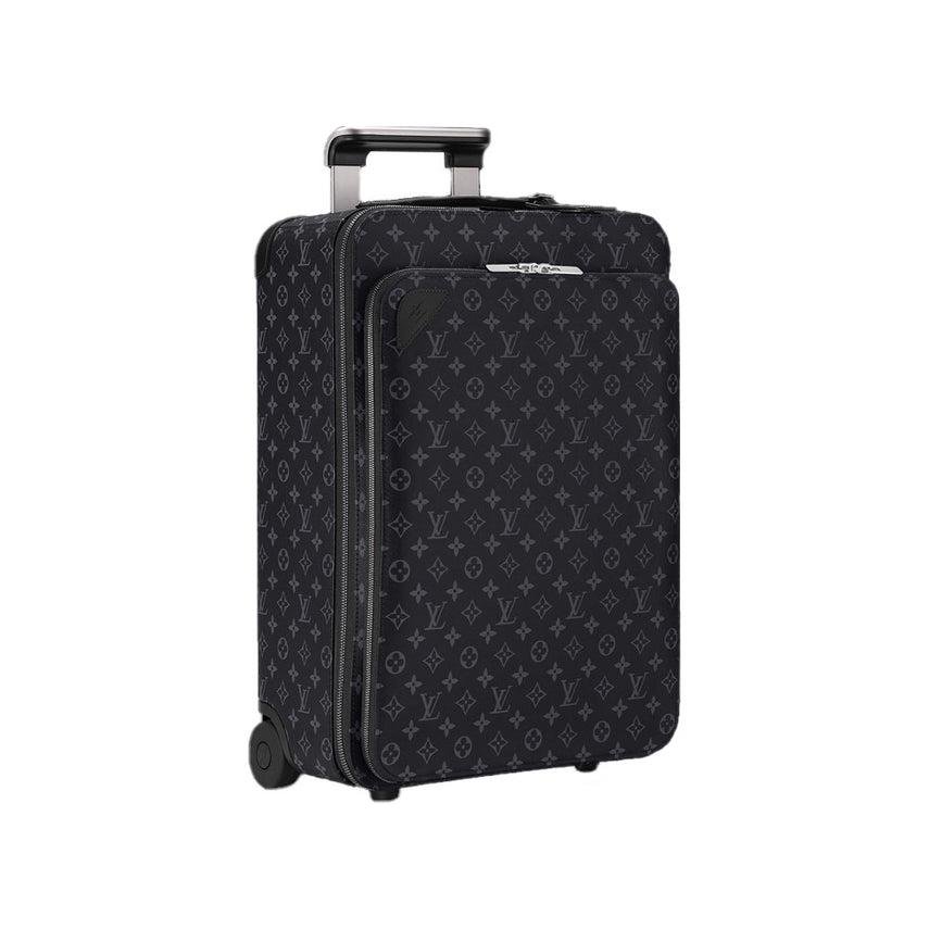 • Conceived by star designer Marc Newson, the Pegase trolley case offers exceptional capacity thanks to its extra-slim tube handle. Louis Vuitton’s distinctive Monogram Eclipse canvas is accented with sophisticated details like trunk-style corner reinforcements. And its easy-access front compartment has padded pockets for a laptop, tablet, phone… Perfect for business travel.