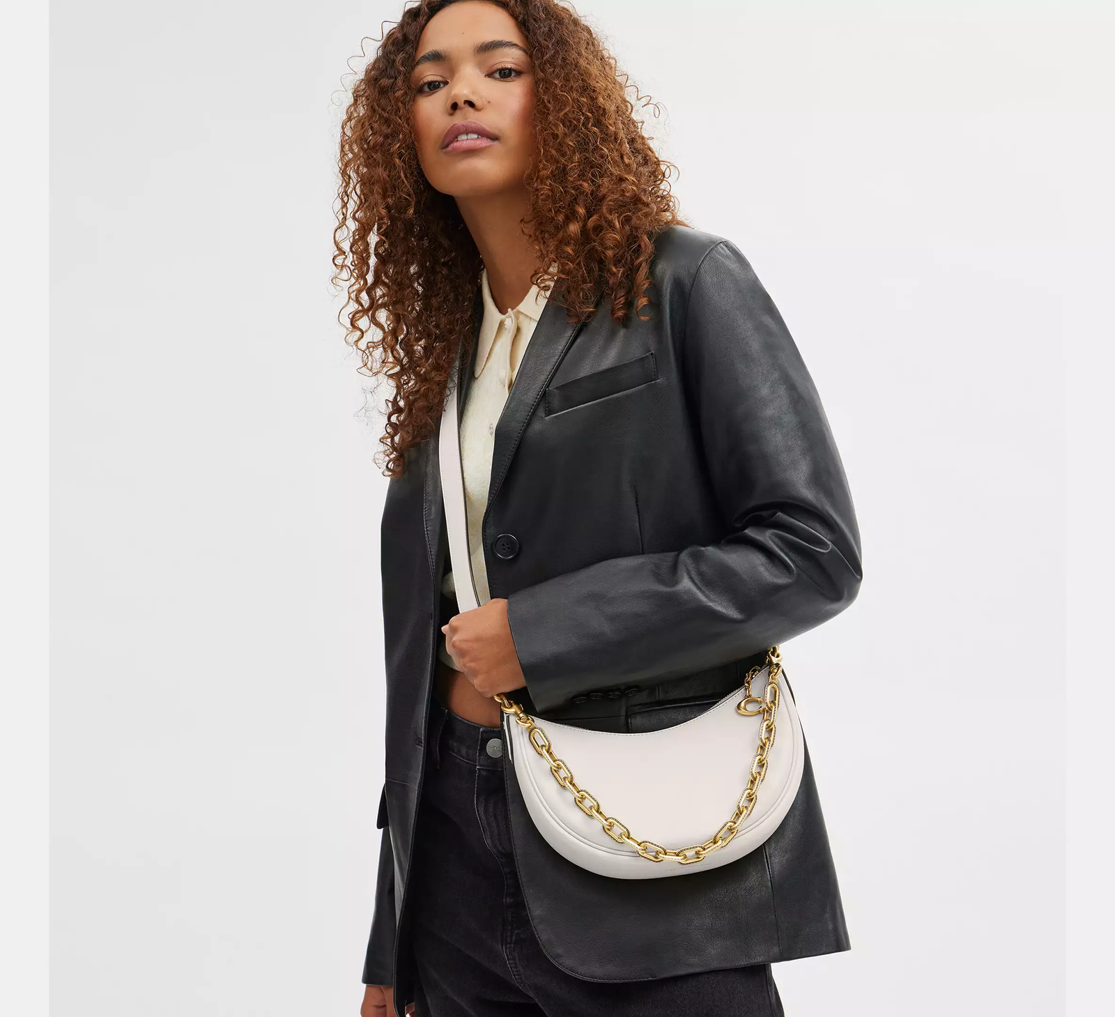 Soft and spacious, our crescent-shaped Mira is ahead of the curve. The versatile style is crafted of buttery soft glovetanned leather finished with a secure zip-top closure detailed with our C hardware. It comes with a chunky chain-link shoulder strap and a detachable leather strap for crossbody wear. (Explore the possibilities.)