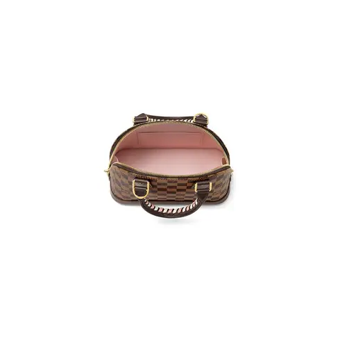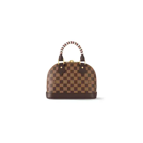 • For the new season this Alma BB handbag sports a fresh take on the Maison’s signature Damier Ebene canvas. The color play on the bag’s braided handles add an irresistible crafted touch to this feminine piece, which can be styled in a host of ways, from hand carry to cross-body and more.