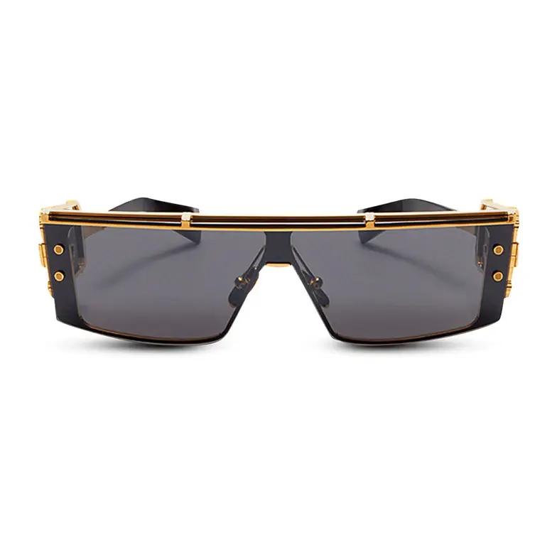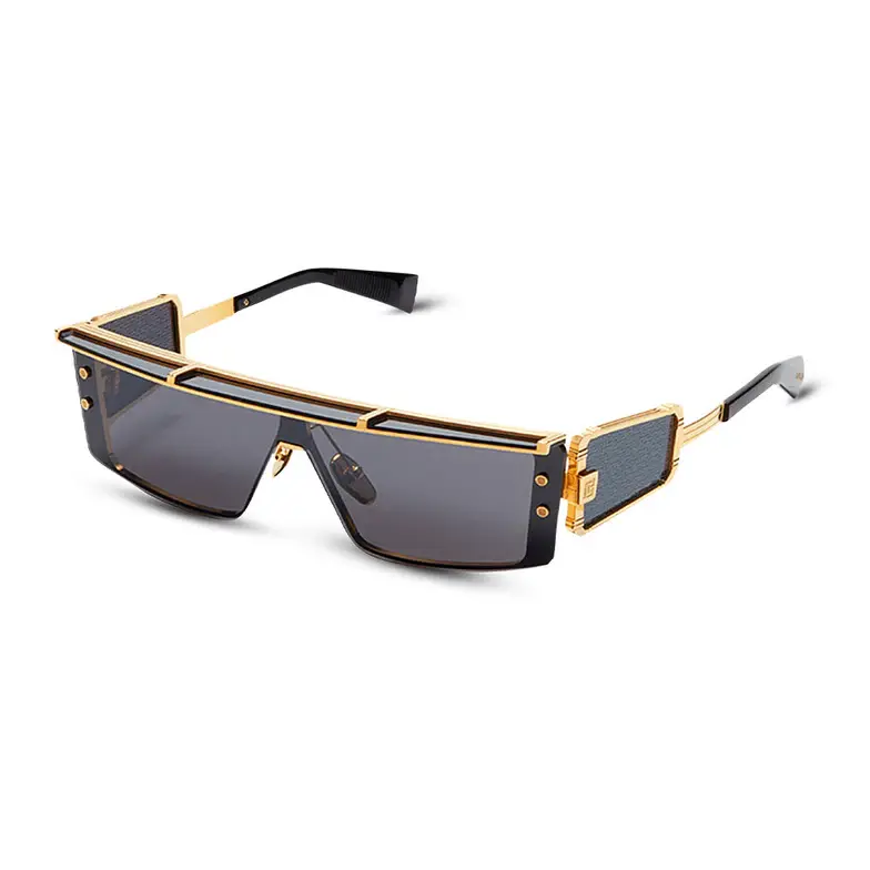 • Oversized titanium frame, wide gold-tone and black temples, gold-tone Balmain logo on temples, gray anti-glare lenses, 100% UV protection