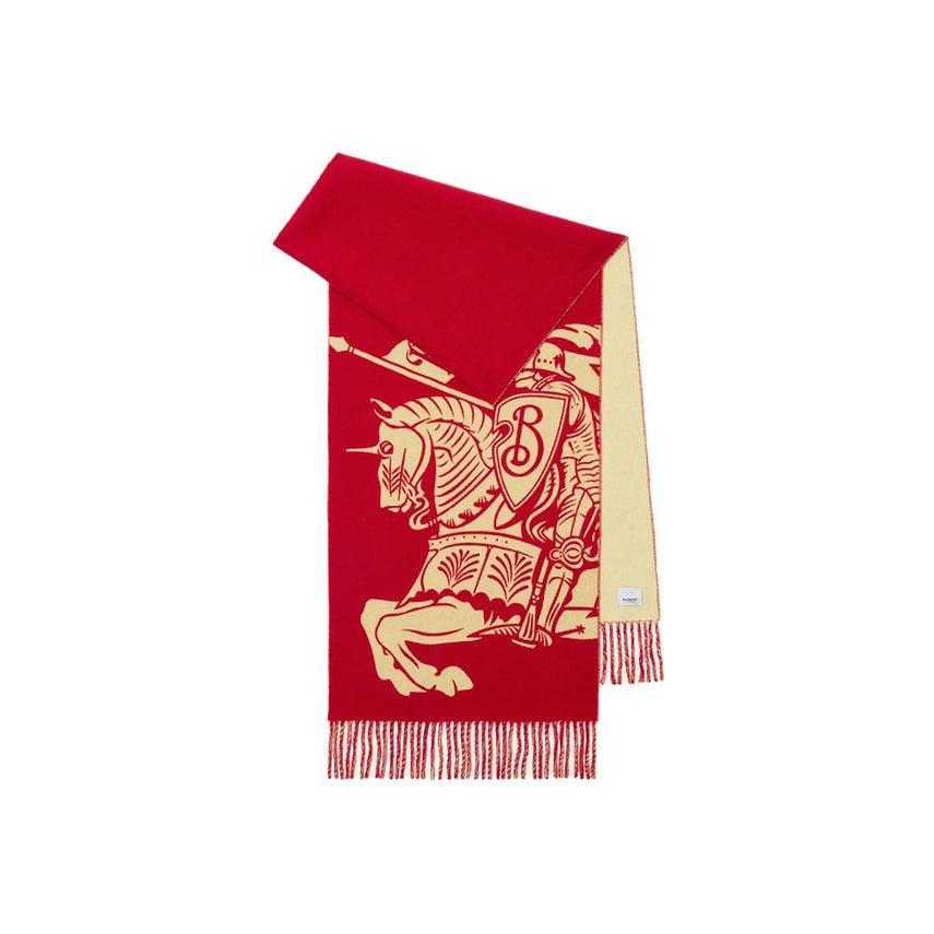 • A scarf in cashmere, jacquard-woven with the Equestrian Knight Design. The reversible design is made in Italy and brushed for an ultra-soft finish.