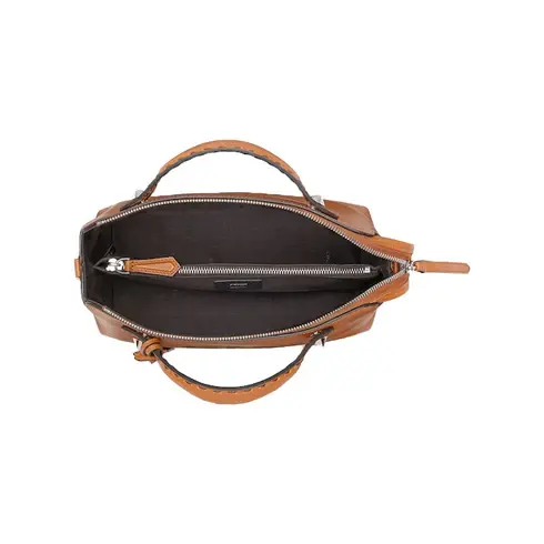 • Medium iconic By The Way Boston bag, made of brown leather with hot-stamped “FENDI ROMA” and zipper closure.