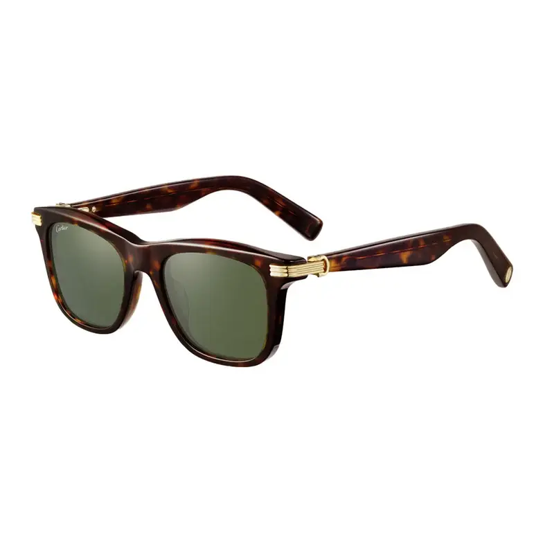 • Première de Cartier sunglasses in tortoiseshell composite, rectangular shape and green lenses. Dimensions: lenses 53 mm, bridge 20 mm, temples 145 mm