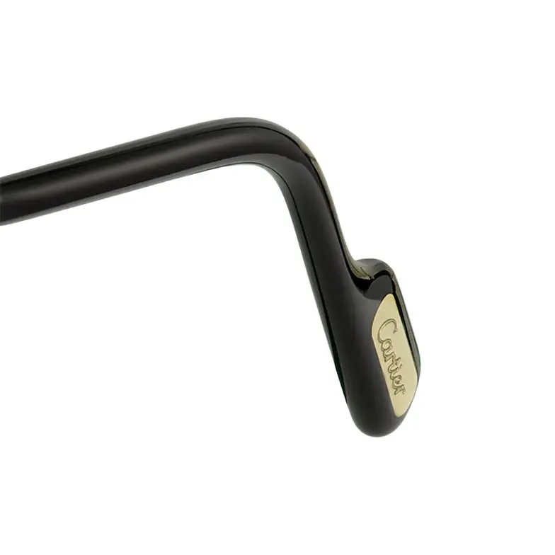 • Première de Cartier sunglasses in rimless metal with a smooth golden finish, rectangular shape and burgundy lenses. Dimensions: 58 mm lenses, 17 mm bridge, 145 mm temples.