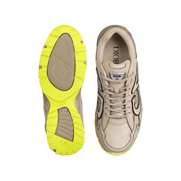 • Ultra-lightweight beige sculpted rubber outsole with fluorescent yellow Dior signature edging