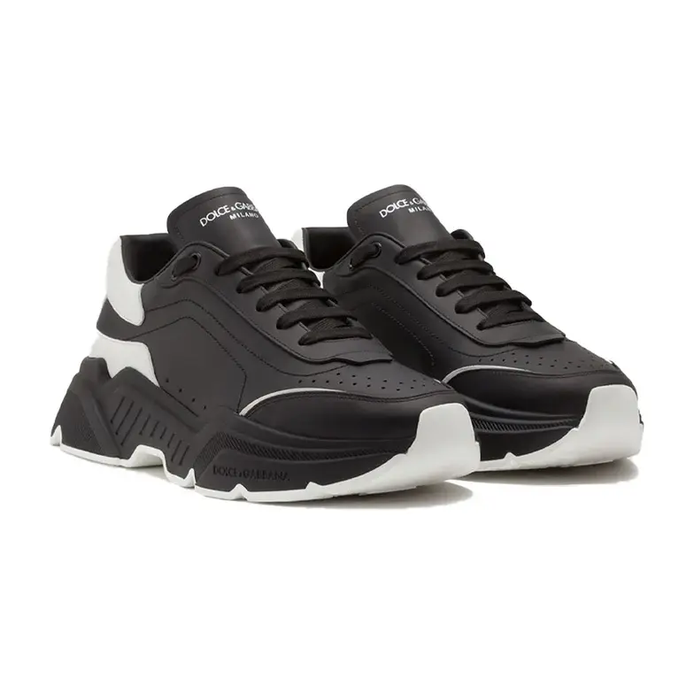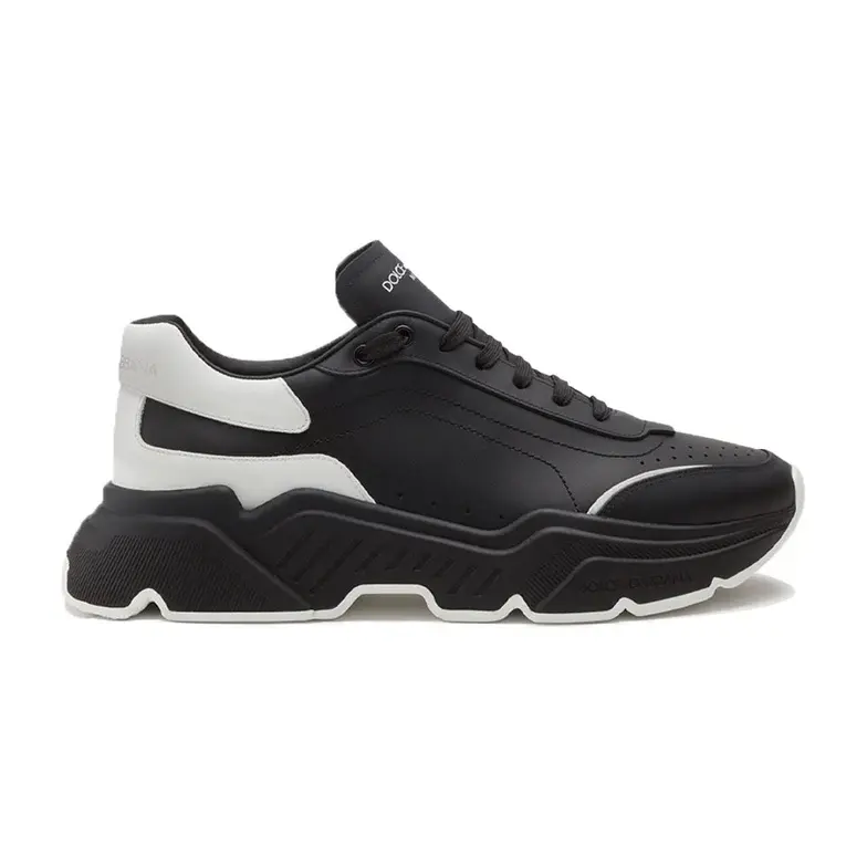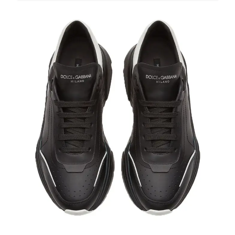 Calfskin nappa upper and contrasting heel cup with golden logo