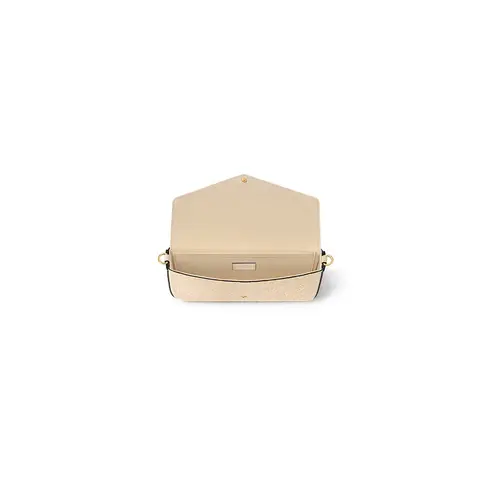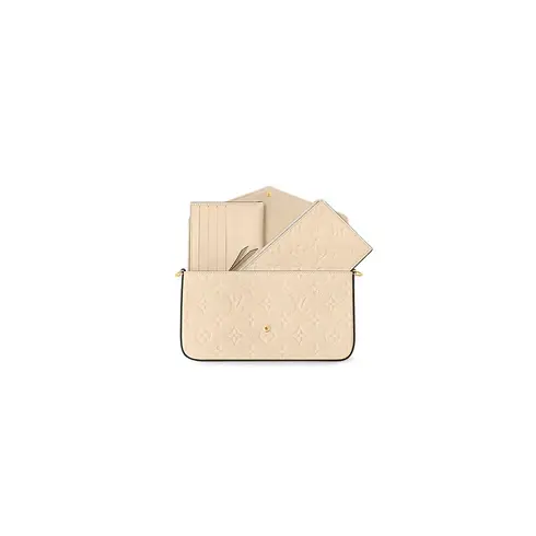 • The Pochette Félicie is crafted from Monogram Empreinte leather, embossed with Louis Vuitton's signature Monogram pattern. Designed to adapt to modern lifestyles, this envelope-style pouch contains a spacious compartment with two removable pockets: one zipped, one with card slots. It can also be carried in different ways thanks to a removable gold-tone chain.