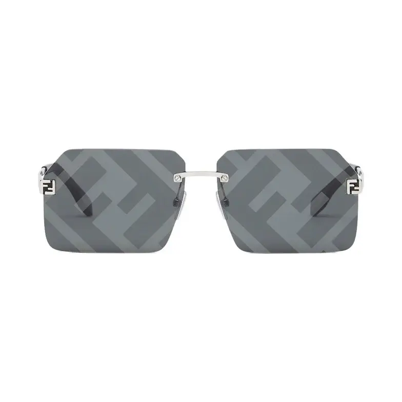 These rectangular sunglasses were presented in the Spring/Summer 2022 fashion show and feature silver-mirrored gray lenses with maxi FF logo and exclusive branded hinges in 3D metal. Temples in palladium-color metal. Adjustable nose pads.