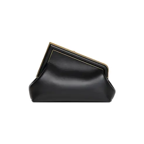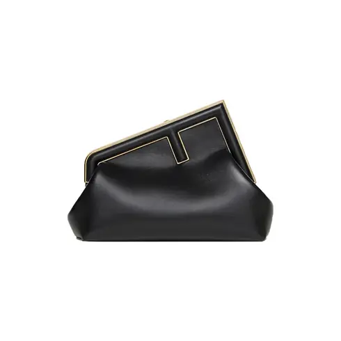 • Fendi First bag in the perfect size for daytime, made of soft, black nappa leather, with oversized metal F clasp bound in tone on tone nappa leather.