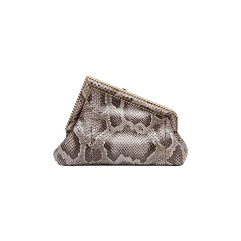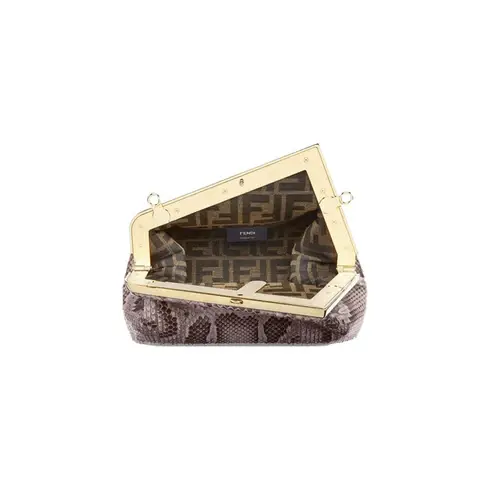 • Small Fendi First bag made of exquisite dark gray python leather with oversized metal F clasp bound in tone on tone python leather.