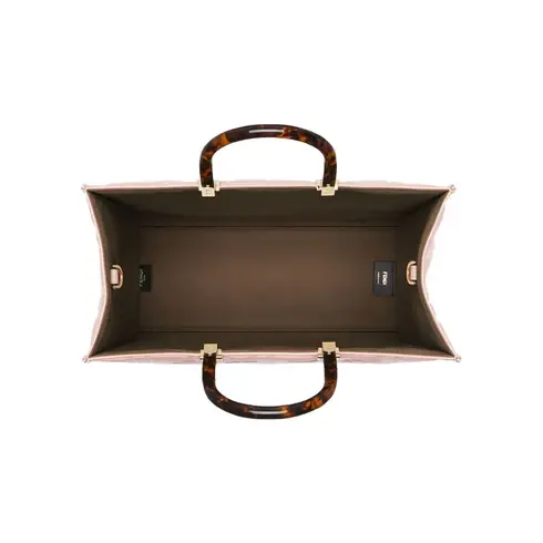 • Features a spacious lined internal compartment, edges in tone on tone leather, and gold-finish metalware.
