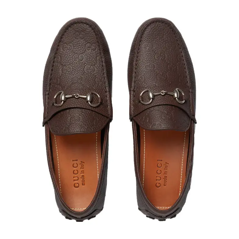 • Dark brown GG embossed leather