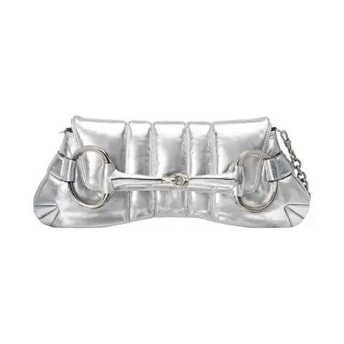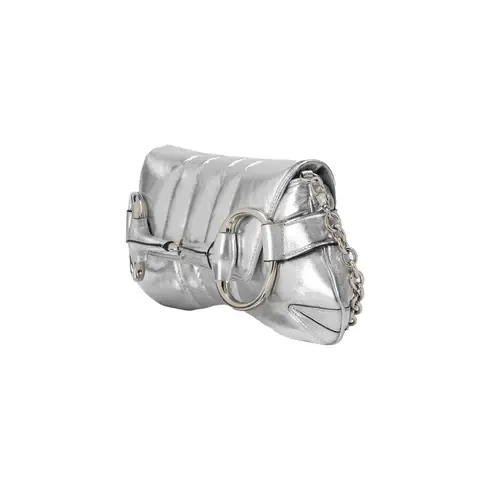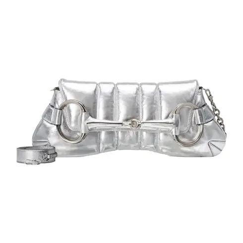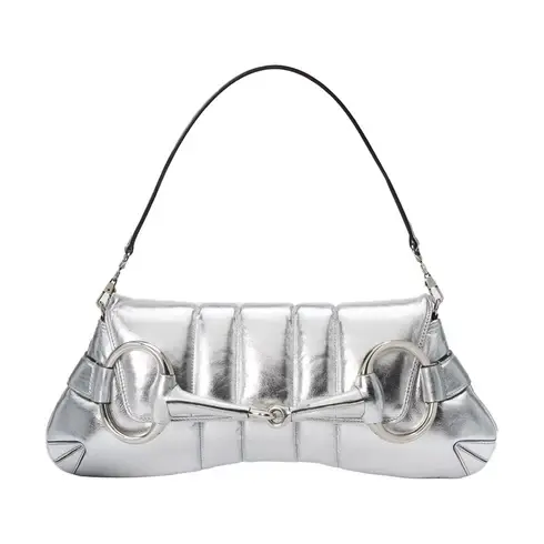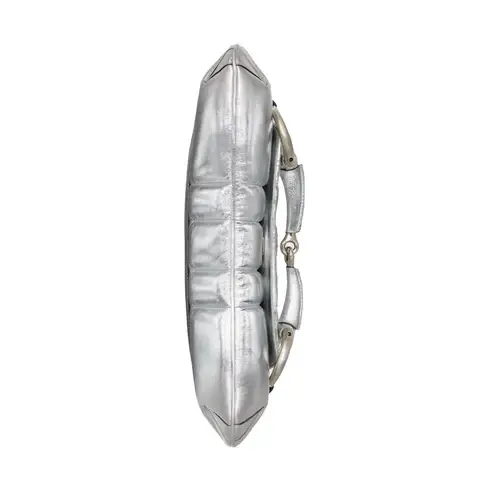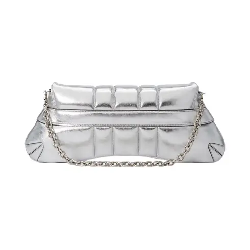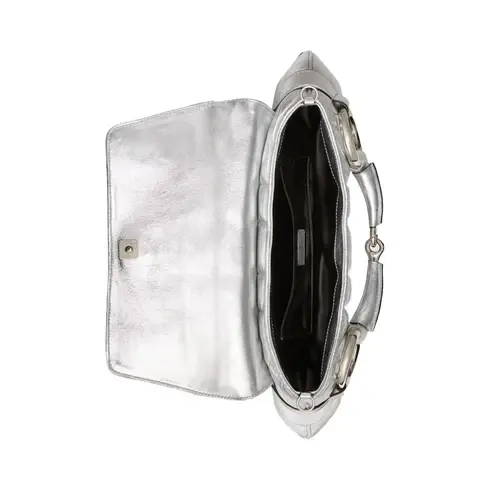 • Silver metallic quilted leather