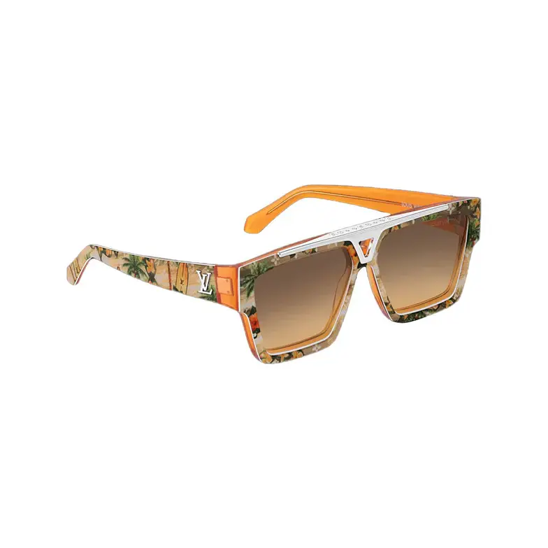 • Metal LV initials on the temples