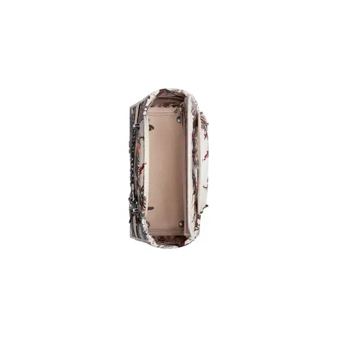 • The Lady D-Lite bag combines classic elegance with House modernity. Fully embroidered with an ecru multicolor Dior Jardin d'Hiver motif, the style offers a poetic and exotic interpretation of Mr. Dior's wall tapestries. The front features a Christian Dior Paris signature while D.I.O.R. charms in ruthenium-finish metal enhance and illuminate the silhouette. Equipped with a wide, reversible and removable embroidered shoulder strap, the medium Lady D-Lite bag can be carried by hand or worn crossbody.