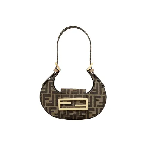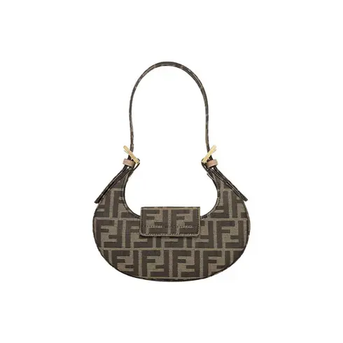 • Mini Cookie hobo bag made of jacquard fabric with an iconic FF motif in brown, decorated with an FF clasp.