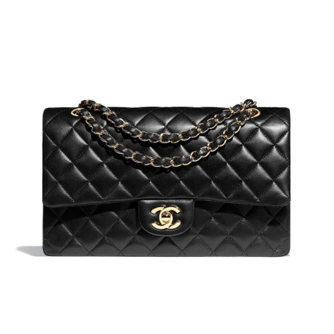 • Shiny Lambskin, Imitation Pearls & Gold-Tone MetalBlack