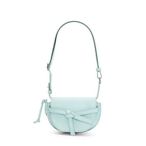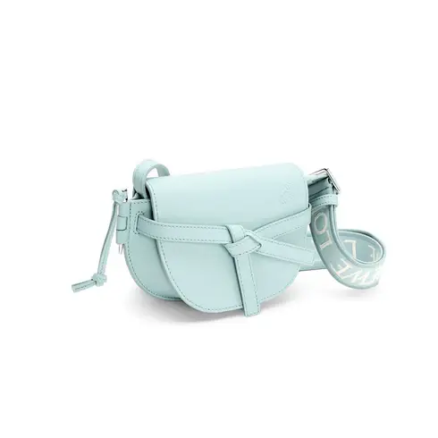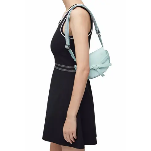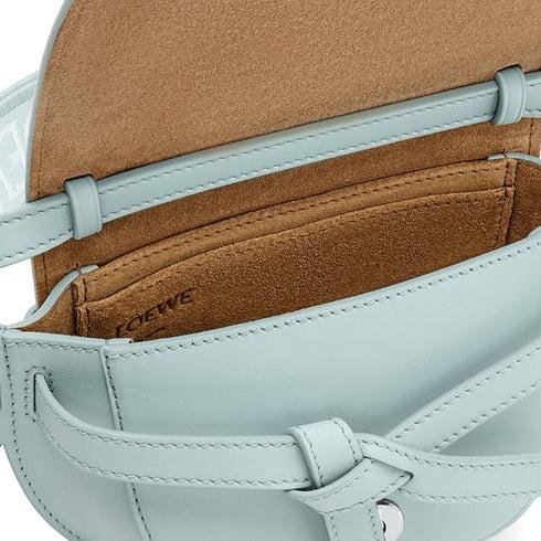 • The Mini Gate Dual displays LOEWE's unrivalled leather craftsmanship with a saddle-stitched knotted leather strap and a side-latched metal pin that gives the bag its name. This mini version is crafted in soft calfskin and features a removable shoulder strap in calfskin and jacquard with a repeat LOEWE pattern.