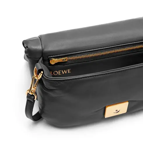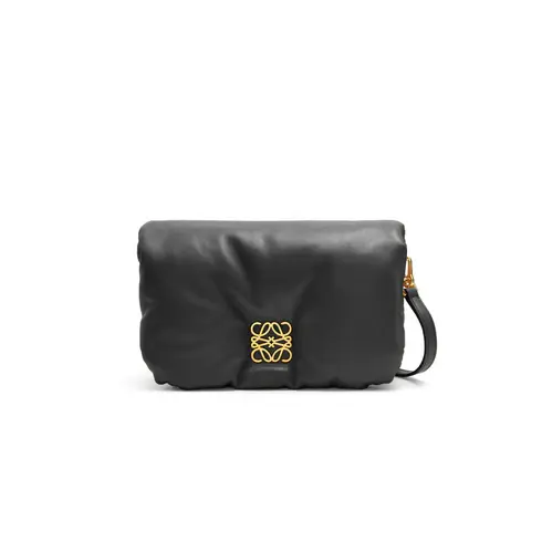 Inspired by the Goya aesthetic, the Goya Puffer is bringing a new sensorial and tactile dimension, thanks to the shiny nappa lambskin emphasized by the goose feathers padding. This mini version is crafted in shiny nappa lambskin and has a detachable and adjustable strap.