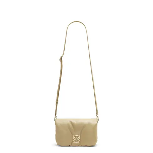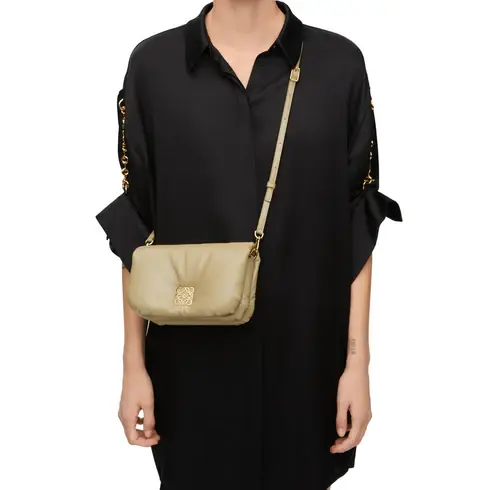 Inspired by the Goya aesthetic, the Goya Puffer is bringing a new sensorial and tactile dimension, thanks to the shiny nappa lambskin emphasized by the goose feathers padding. This mini version is crafted in shiny nappa lambskin and has a detachable and adjustable strap.