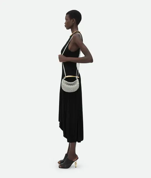 •  Mini Intrecciato leather cross-body bag with metallic top handle