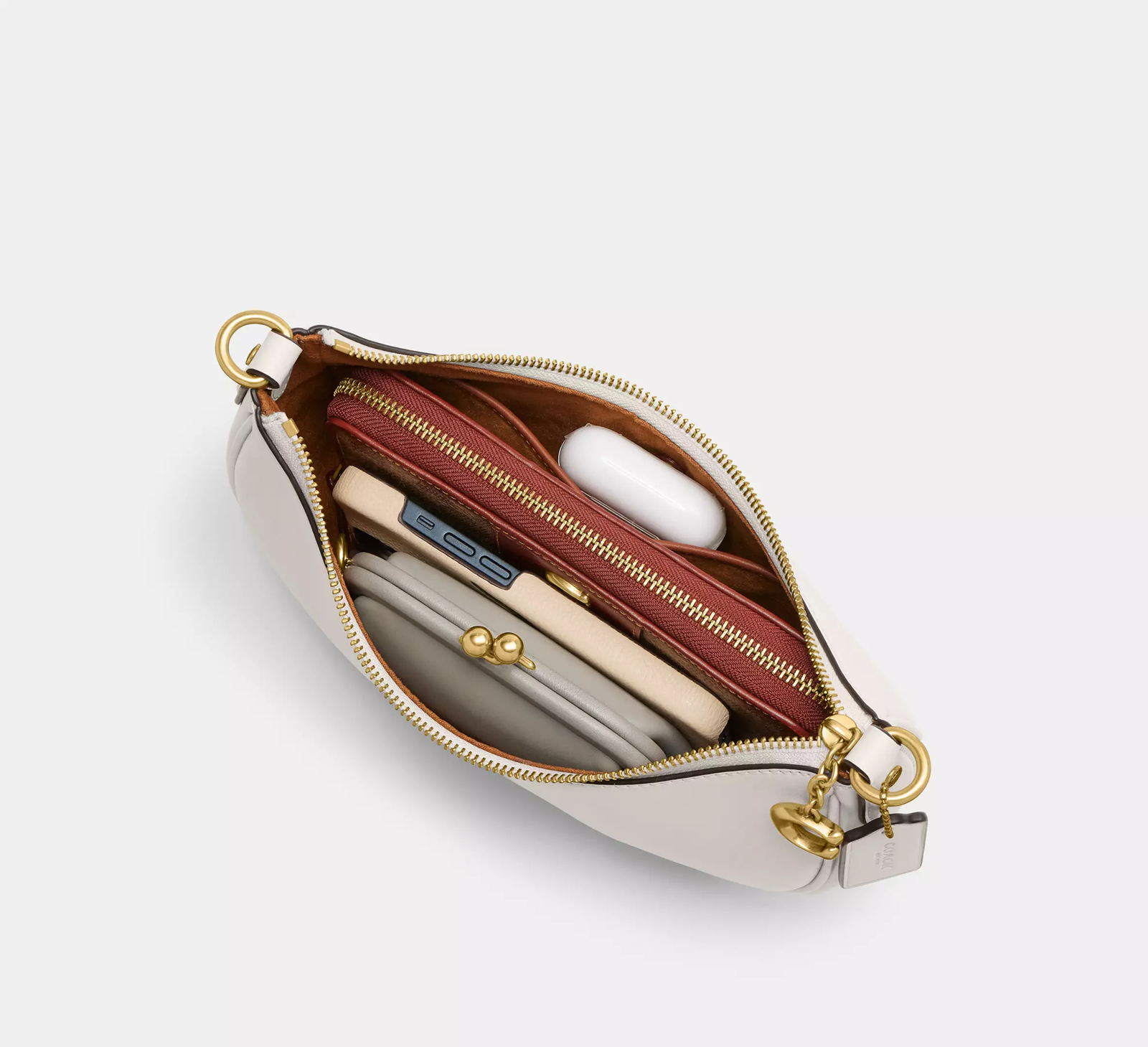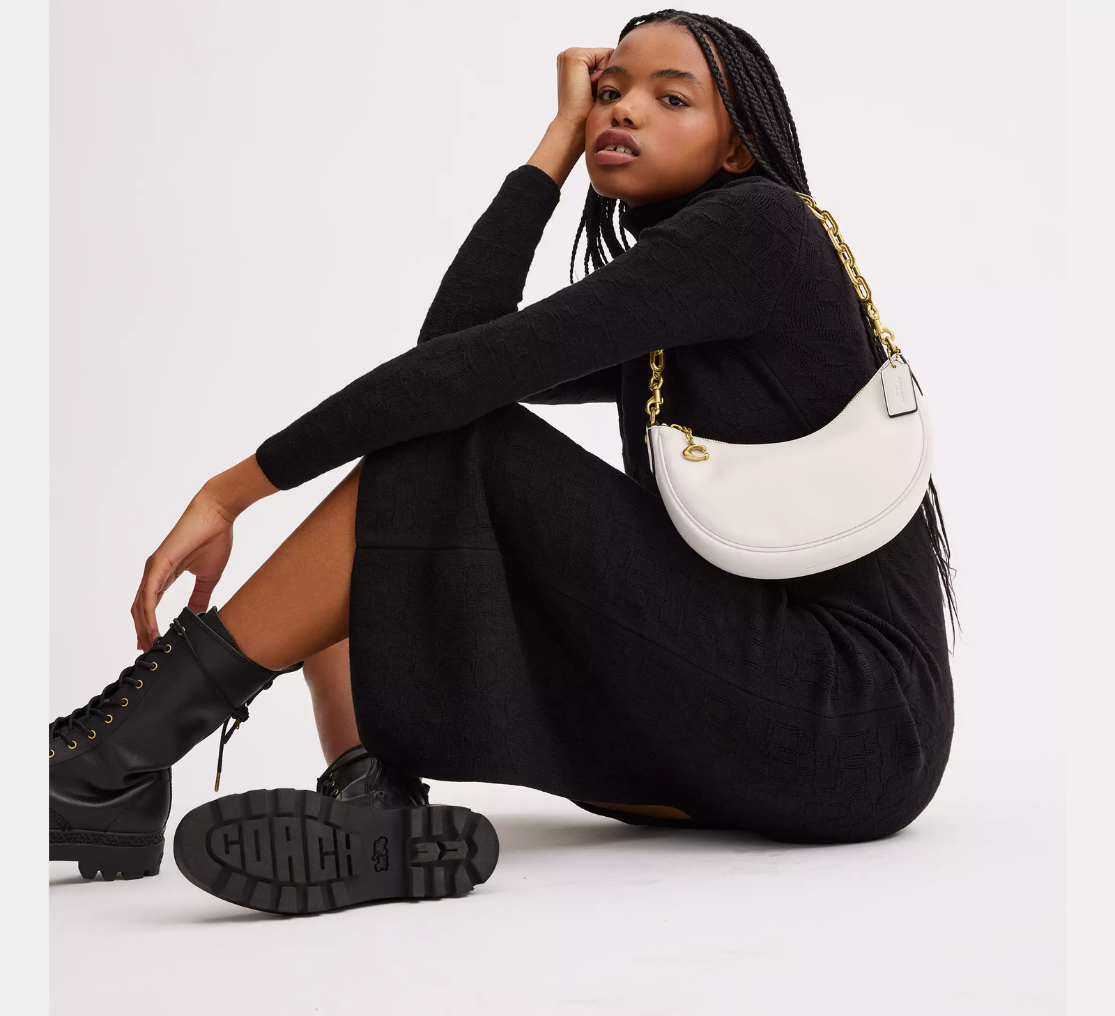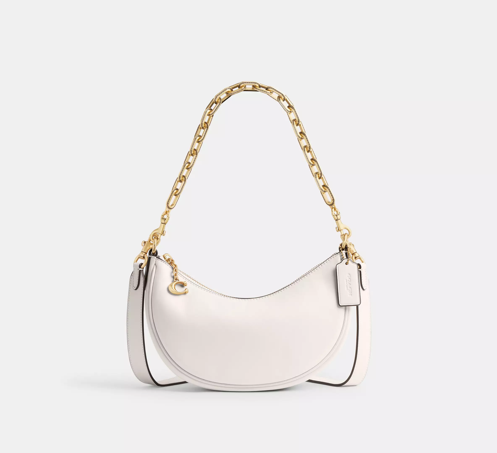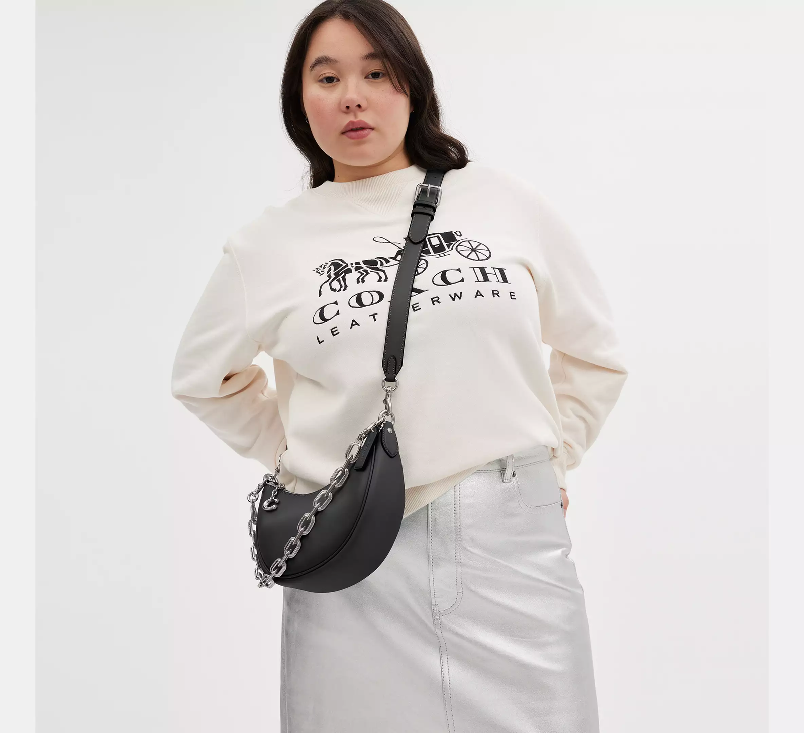 Soft and spacious, our crescent-shaped Mira is ahead of the curve. The versatile style is crafted of buttery soft glovetanned leather finished with a secure zip-top closure detailed with our C hardware. It comes with a chunky chain-link shoulder strap and a detachable leather strap for crossbody wear. (Explore the possibilities.)