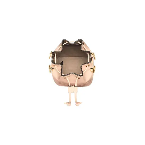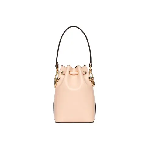 • Small Mon Tresor bucket bag in pale pink leather, with FENDI ROMA lettering print.