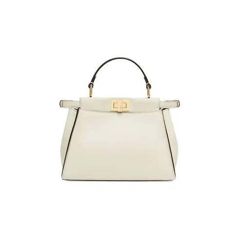 • Iconic small Peekaboo bag made of white leather and embellished with the classic twist lock on both sides.