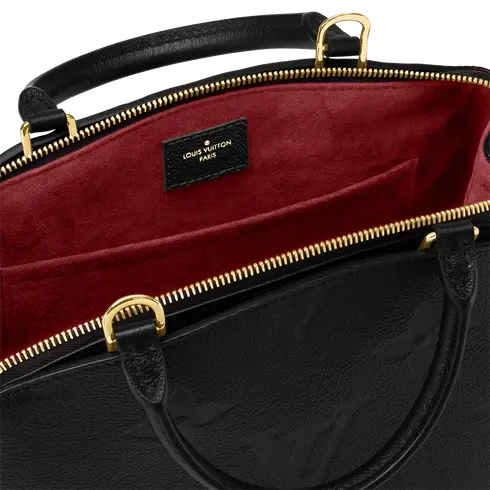 • The sophisticated Petit Palais is a smaller handbag made from soft, grained leather with an embossed oversized Monogram pattern. The leather name tag and gold-color padlock bring a touch of elegance and evoke the House’s travel roots. There are two top handles for hand carry; the removable and adjustable strap provides comfortable shoulder wear.
