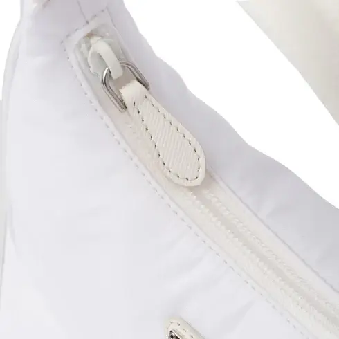 • A new interpretation of an iconic Prada style, the Re-Edition 2000 mini-bag is made of innovative Re-Nylon, produced from recycled, purified plastic trash collected in the ocean, fishing nets, and textile waste fibers. The accessory with zipper closure and woven tape handle is decorated with the iconic enameled metal triangle logo.