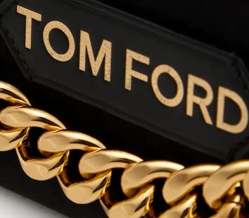 • TOM FORD shoulder clutch bag in satin with leather trim.