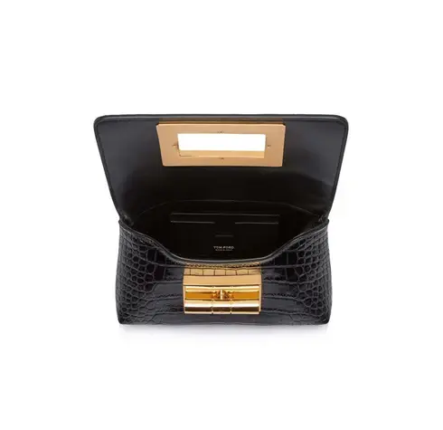 Shiny Stamped Crocodile Leather Natalia Mini Shoulder Bag