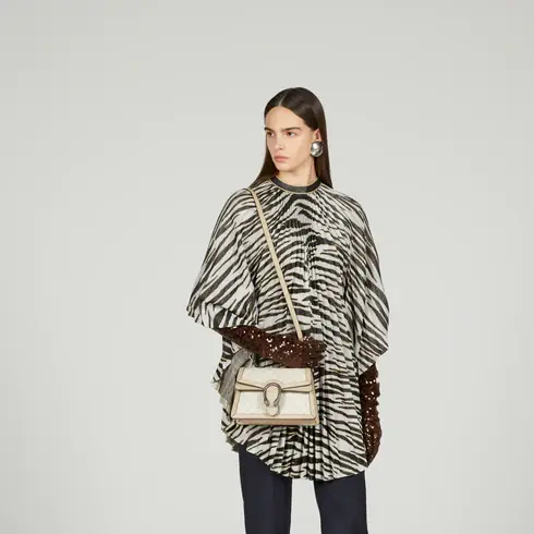 Small Dionysus Top Handle Bag Beige and White