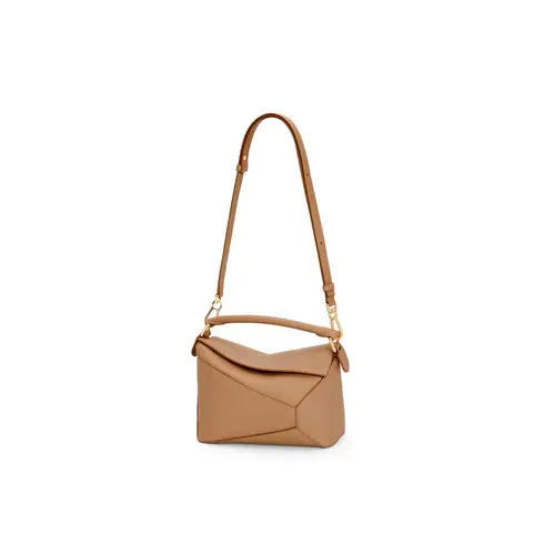 A cuboid shape and precise cutting technique create Puzzle’s distinctive geometric lines. This small version is crafted in soft grained calfskin with overlapped edges.
