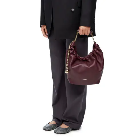 The Squeeze bag is a sophisticated and feminine bag in buttery nappa leather. It is a masterpiece of traditional craftsmanship, innovative research and distinctive design, with a surprisingly light ruched body, an adjustable donut chain and a tactile squeezy handle. This is a small version in nappa lambskin