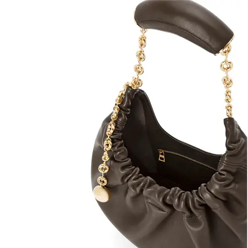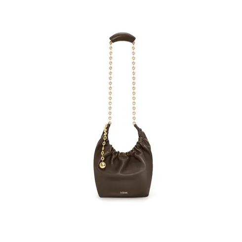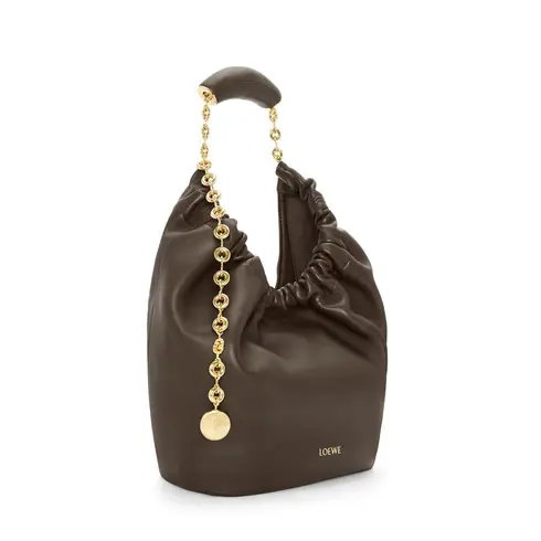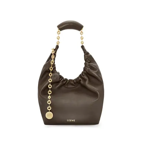 • The Squeeze bag is a sophisticated and feminine bag in buttery nappa leather. It is a masterpiece of traditional craftsmanship, innovative research and distinctive design, with a surprisingly light ruched body, an adjustable donut chain and a tactile squeezy handle. This is a small version in nappa lambskin