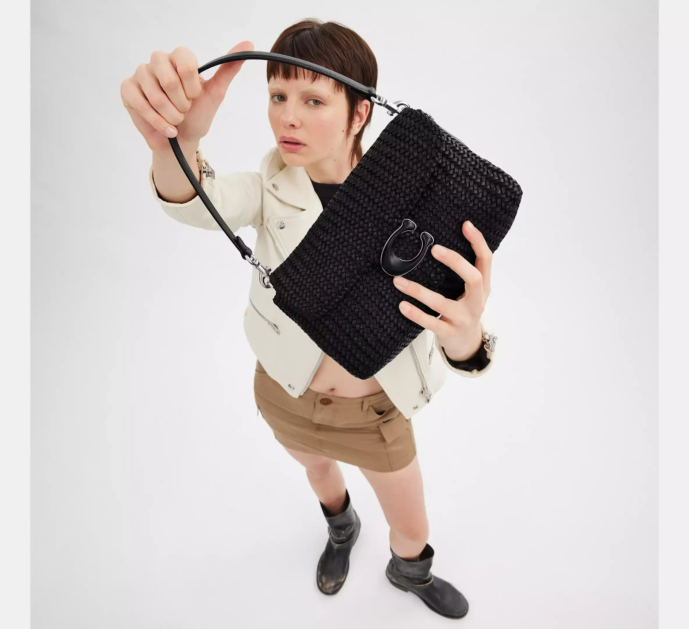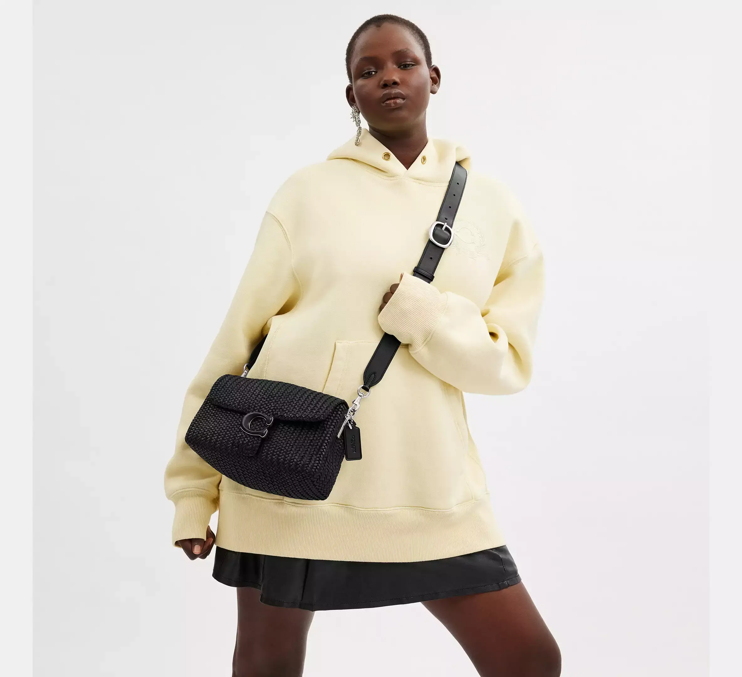 The Soft Tabby reimagines our structured take on an archival 1970s Coach design with a slouchy relaxed feel. Finished with our leather-covered Signature hardware for an iconic touch, this woven shoulder bag features an inside zip pocket to organize small accessories and two detachable straps to carry by hand, style as a short shoulder bag or wear crossbody. A nod to our heritage Coach craftsmanship, the bag’s supple leather laces are weaved by hand on a wooden mold in a process that takes up to 26 hours to complete.