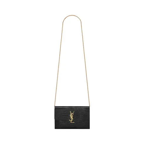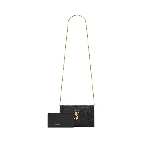UPTOWN Chain Wallet In Crocodile-Embossed Shiny Leather