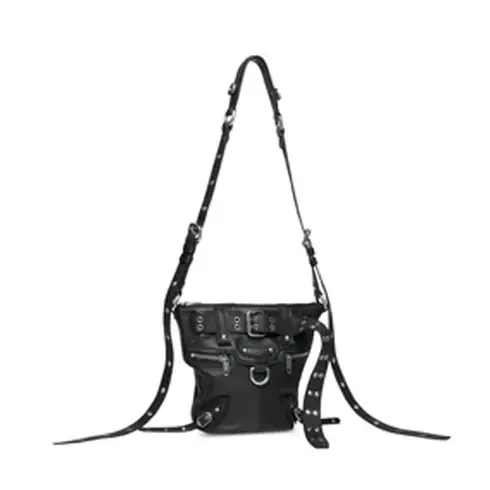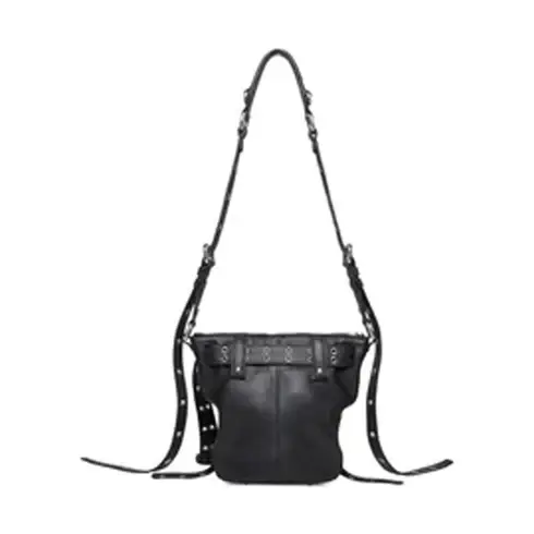 • Emo XS Bucket Bag in black washed calfskin, aged-silver hardware