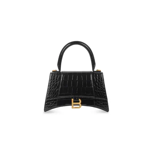 Women's Hourglass Small Handbag Crocodile Embossed in Black